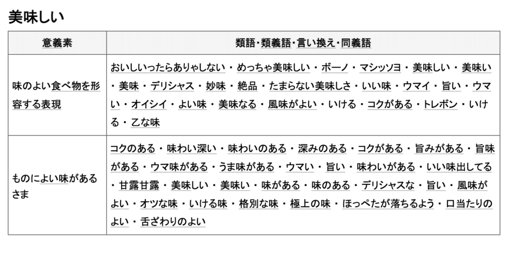 それぞれの類語が表示されますので、