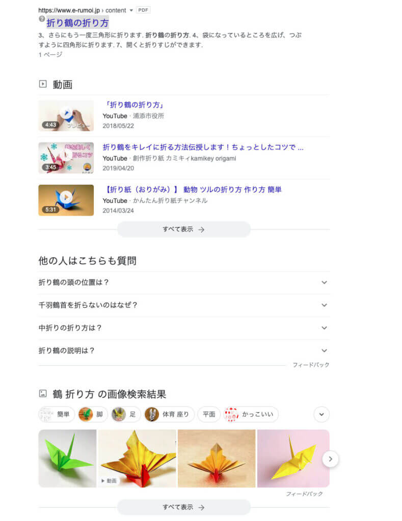 例えば、Googleで「鶴 折り方」を検索してみてください。